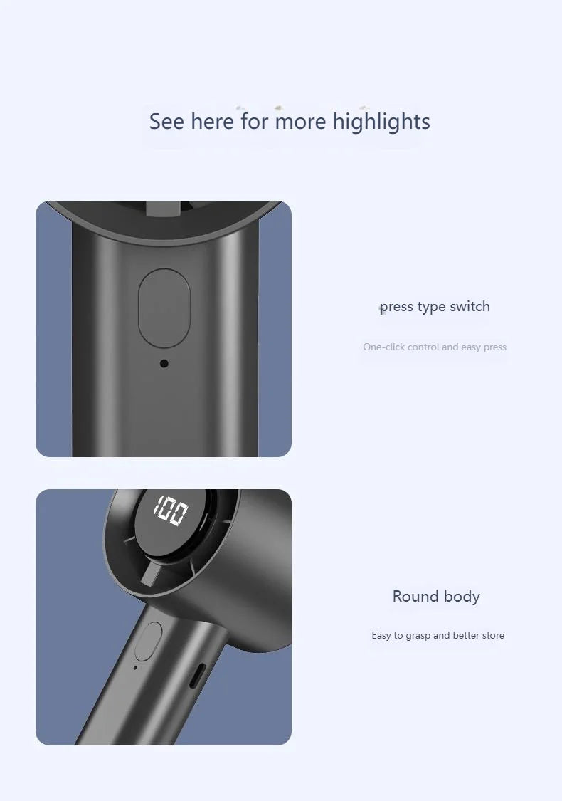Portable Mini Handheld Fan with LED Display Semiconductor Refrigeration 100 Speeds USB Rechargeable Battery Outdoor Fan